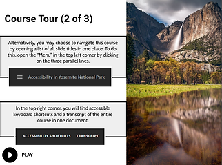 I love traveling and the outdoors and am very passionate about accessibility. In my time working in higher ed Instructional Design, I spent countless hours working on creating digital materials that were as accessible as possible to users with disabilities. When creating this project, I decided to marry these two passions together, so I researched accessibility within Yosemite National Park.